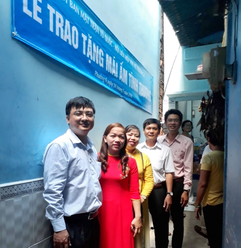 Ban Thường trực Ủy ban Mặt trận Tổ quốc Việt Nam – Ban vận động “Vì người nghèo” phường đã phối hợp với Hội Liên hiệp phụ nữ phường vận động ông/bà Phạm Văn Mách hỗ trợ kinh phí 40.000.000 đồng để xây dựng Mái ấm tình thương cho gia đình bà Nguyễn Thị Tỷ.