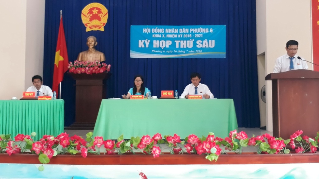 Sáng 26/7, Hội đồng nhân dân Phường 6 tổ chức kỳ họp thứ sáu, kỳ họp thường lệ của Hội đồng nhân dân Phường 6 khóa X nhiệm kỳ 2016 – 2021. Đến tham dự kỳ họp có ông Phạm Minh Tâm – Phó Trưởng Ban Pháp chế HĐND quận.