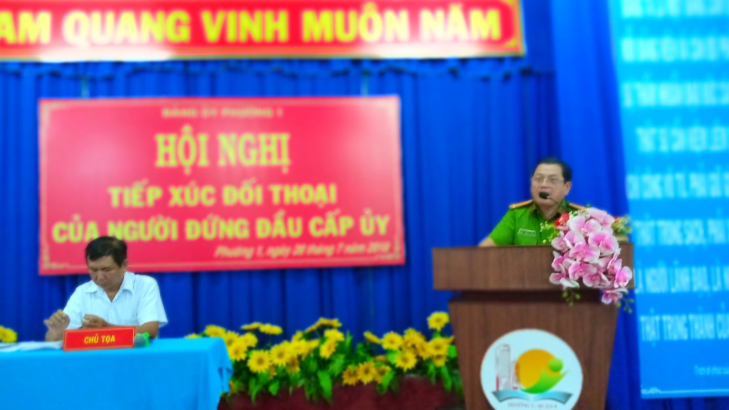 Về phía phường lãnh đạo phường có : Ông Lê Văn Tám – Bí thư Đảng ủy - Chủ tịch HĐND phường; Bà Vũ Yến Oanh - Phó bí thư Đảng ủy - Chủ tịch UBND phường; bà Hoàng Thị Hải Vi – Đảng ủy viên – Chủ tịch Uỷ ban MTTQ Việt Nam Phường 1. Cùng với dự tham dự của các ngành công an , các đoàn thể chính trị xã hội phường và đại diện các hộ dân ở Khu phố 2. Hội nghị nhận được 06 lượt hộ dân tham gia phát biểu với các nội dung xoay quanh vấn đề an ninh trật tự, vê sinh môi trường, công tác giáo dục trên địa bàn phường./.