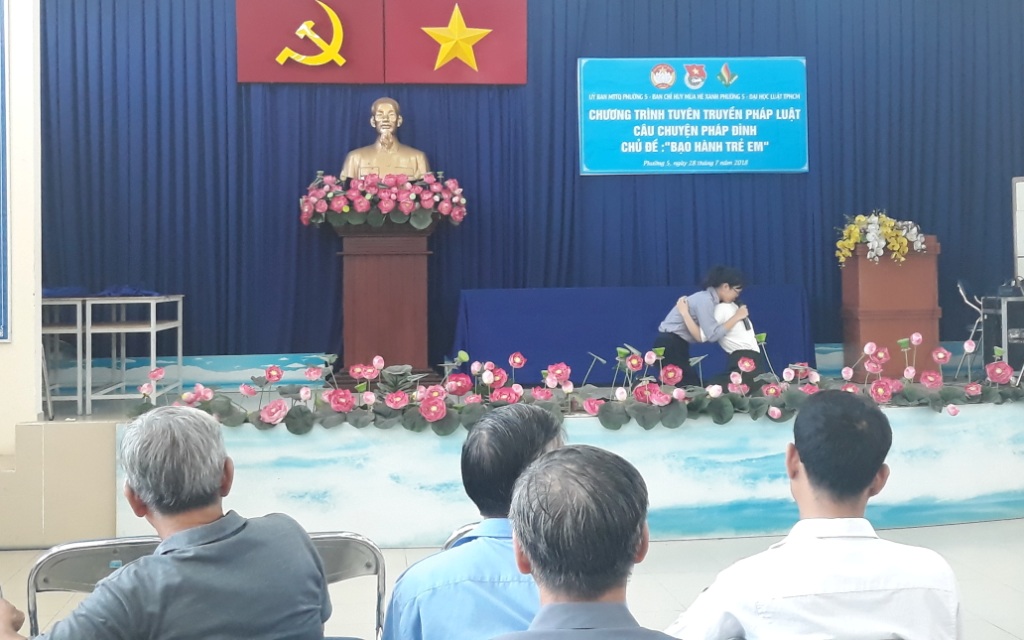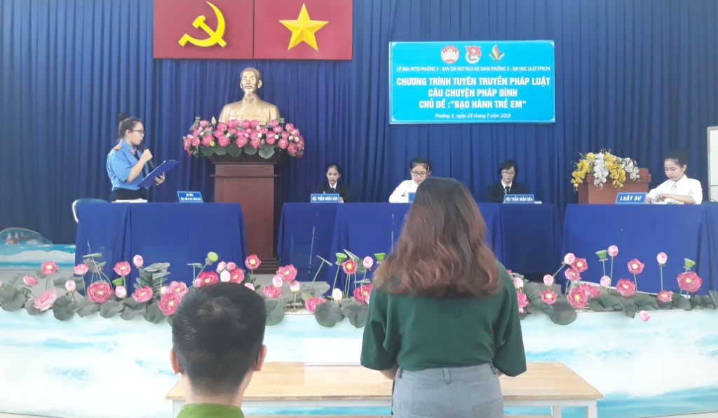 Ngày 28/07/2018 tại Ủy ban nhân dân Phường 5, Ủy ban Mặt trận Tổ quốc Việt Nam phối hợp cùng Ban chỉ huy Mùa hè xanh Phường 5 và Trường Đại học Luật TP HCM tổ chức tuyên truyền pháp luật, Câu chuyện Pháp đình với Chủ đề “Bạo hành trẻ em”.