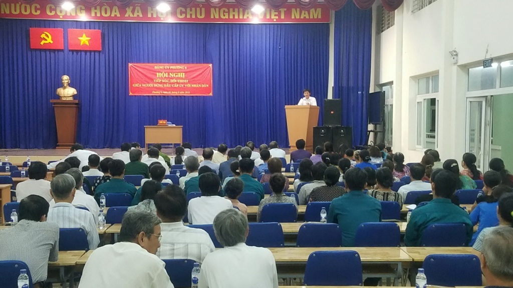 Tối 02/8, Đảng ủy Phường 6 tổ chức Hội nghị tiếp xúc, đối thoại trực tiếp giữa người đứng đầu cấp ủy với Nhân dân trên địa bàn Phường 6. Đến tham dự Hội nghị có các đồng chí: Mai Hồng Phong, Phó Chủ tịch thường trực Ủy ban Mặt trận Tổ quốc quận; Đinh Thị Thim, chuyên viên Văn phòng Quận ủy; Nguyễn Thị Hồng Cẩm, chuyên viên Ban Dân vận Quận ủy; Đảng ủy viên phường và 126 Nhân dân ở khu phố, tổ dân phố, cán bộ, đảng viên, đoàn viên của các tổ chức chính trị - xã hội ở khu phố,... Chủ trì Hội nghị tiếp xúc, đối thoại là đồng chí Nguyễn Quang Huy, Quận ủy viên, Bí thư Đảng ủy Phường 6.