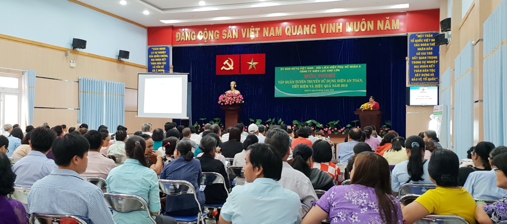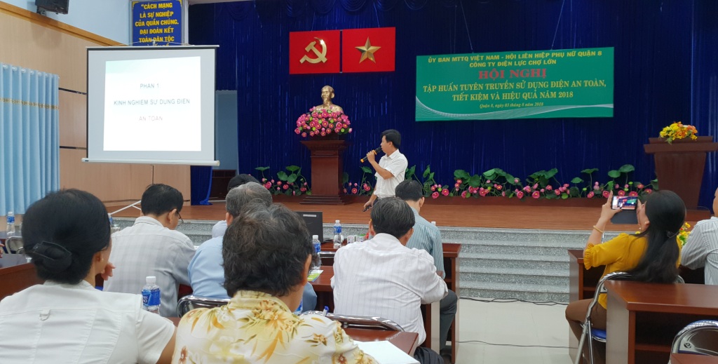 Sáng ngày 03/8/2018, Hội LHPN Quận 8 phối hợp với UBMTTQ Việt Nam Quận 8 và công ty Điện lực Chợ Lớn tổ chức Hội nghị tuyên truyền sử dụng điện an toàn, tiết kiệm và hiệu quả năm 2018.