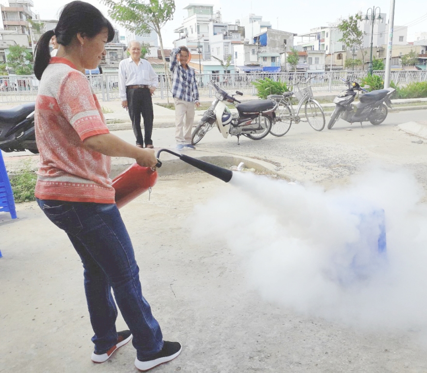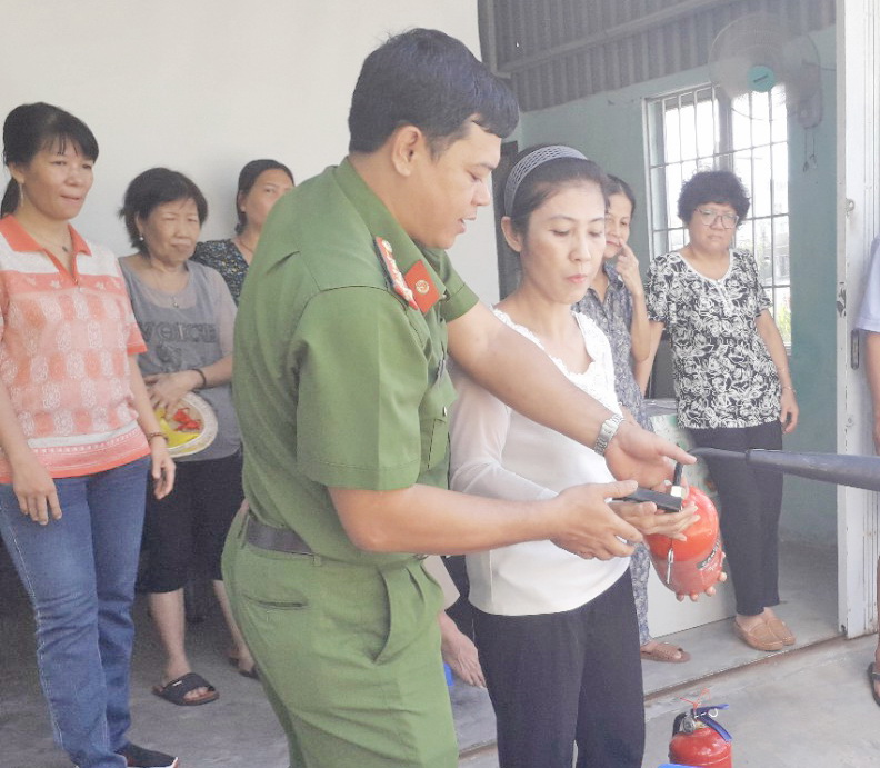 Nhân dân tham gia hội nghị được nghe hướng dẫn cụ thể về cách sử dụng điện an toàn trong gia đình; các kỹ năng, cách xử lý tình huống liên quan đến sự cố cháy nổ khi có xảy ra cháy. Đặc biệt trong hội nghị, người dân còn được tập huấn về thao tác sử dụng bình chữa cháy mini tại gia đình.