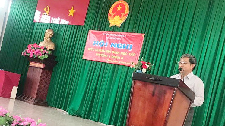 Ông Trần Văn Thanh - Chủ tịch Hội Khuyến học Quận 8 phát biểu chỉ đạo
