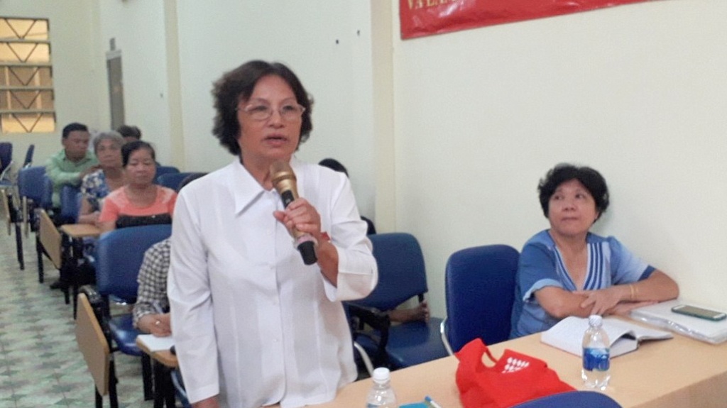 Cử tri phát biểu trong hội nghị tiếp xúc.