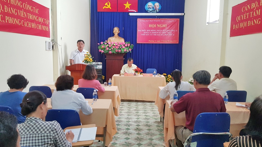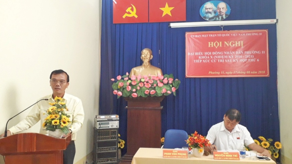 Chiều ngày 17 tháng 8 năm 2018, tại hội trường Ủy ban nhân dân phường 11, Ủy ban Mặt trận Tổ quốc Việt Nam Phường 11 đã tổ chức hội nghị tiếp xúc giữa đại biểu hội đồng nhân dân Phường 11 khóa X, nhiệm kỳ 2016 – 2021 với cử tri Phường 11 sau kỳ họp thứ 6.