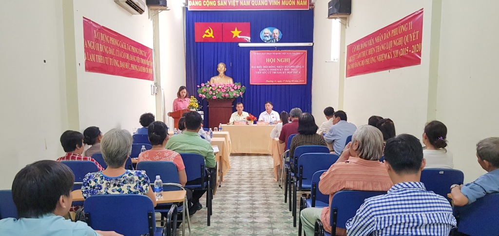 Cử tri tham dự hội nghị được nghe báo cáo kết quả kỳ họp thứ 6 của Hội đồng Nhân dân Phường 11 khóa 10 và báo cáo kết quả giải quyết kiến nghị của cử tri.