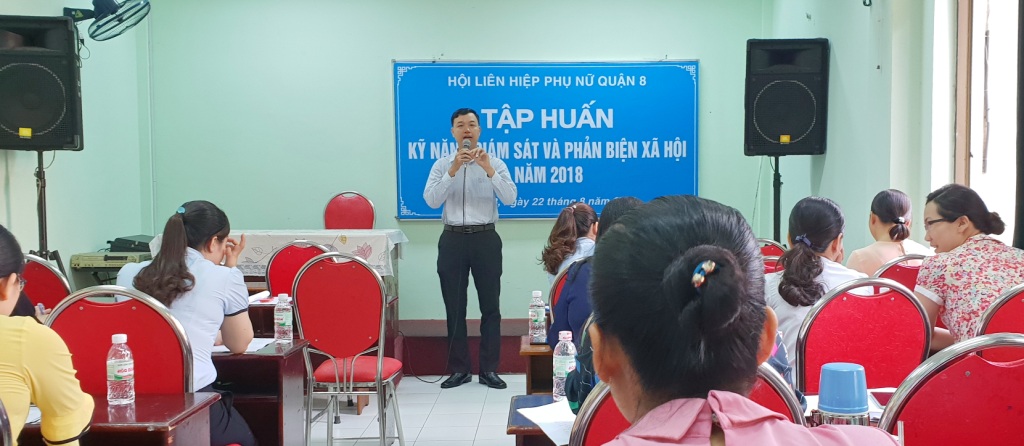 Sáng ngày 22/8/2018, Ban Thường vụ Hội Liên hiệp Phụ nữ Quận 8 phối hợp Trung tâm bồi dưỡng chính trị Quận 8 tổ chức Hội nghị tập huấn “Kỹ năng giám sát và phản biện xã hội” năm 2018.