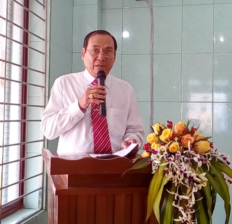 Ông Mai Hồng Phong - Phó Chủ tịch Thường trực Ủy ban Mặt trận Tổ quốc Việt Nam Quận 8 phát biểu nhân Lễ Tạ pháp - Bế giảng khóa an cư kiết hạ (Phật lịch 2562 - Dương lịch 2018).