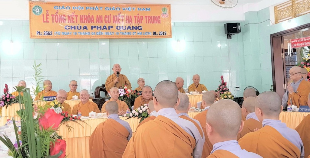 Hạ qua mau, hoa lá đổi thay để đón mùa thu đến, là cảnh tượng báo hiệu mùa Vu Lan một lần nữa trở về với người con Phật, ngày tự tứ lại đến với người xuất gia, một tuổi hạ nữa được điền vào “Vô tác giới thể” của mỗi hành giả an cư; Đồng thời để tổng kết quá trình tu học, sinh hoạt của chư Tăng, Ni trong ba tháng an cư kiết hạ. Qua đó, rút ra những bài học kinh nghiệm thực tiễn cho mỗi khóa an cư, phát huy trí năng hữu dụng, ngỏ hầu nối thạnh dòng Phật, thắp sáng đèn thiền, trưởng dưỡng đạo tâm, trang nghiêm giáo hội. Sáng ngày 26 tháng 8 năm 2018, tại đạo tràng Chùa Pháp Quang, Ban Trị sự Giáo hội Phật giáo Việt Nam Quận 8 đã tổ chức Lễ Tạ pháp - Bế giảng khóa an cư kiết hạ (Phật lịch 2562 - Dương lịch 2018).