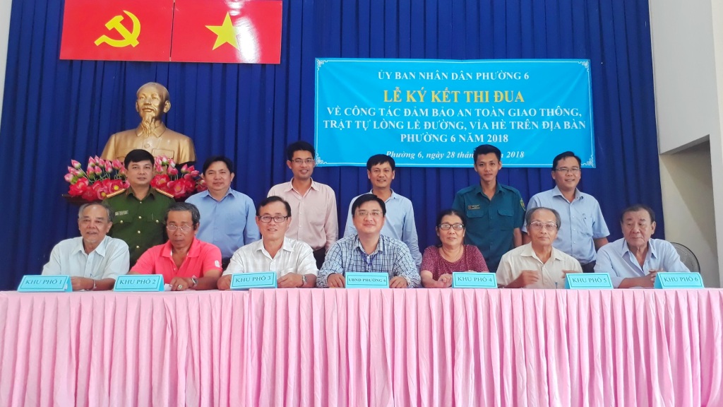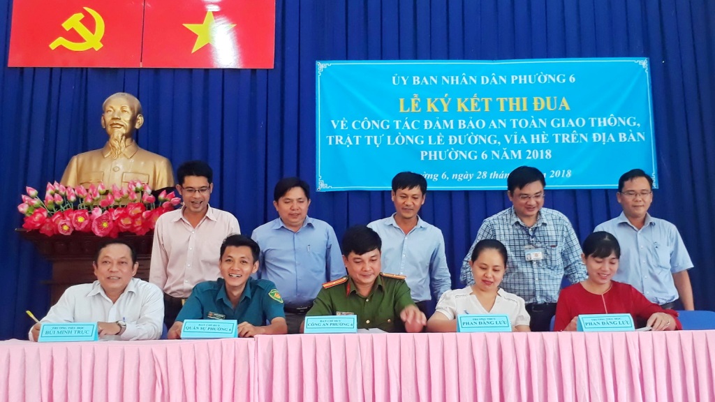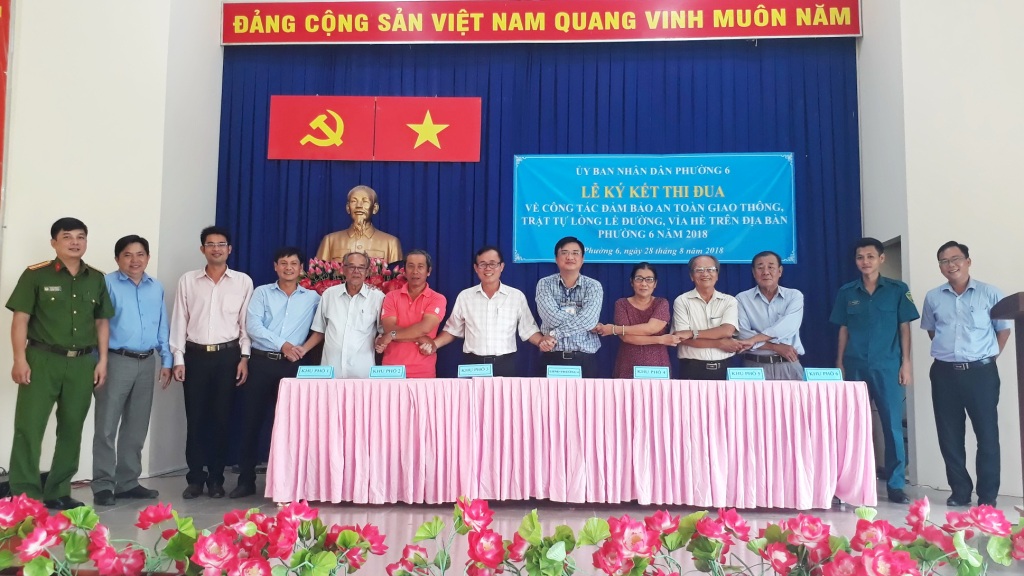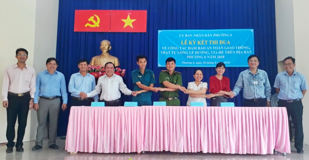 Ngày 28/8, Ủy ban nhân dân Phường 6 tổ chức Lễ ký kết thi đua về công tác đảm bảo an toàn giao thông, trật tự lòng lề đường, vỉa hè trên địa bàn Phường 6.