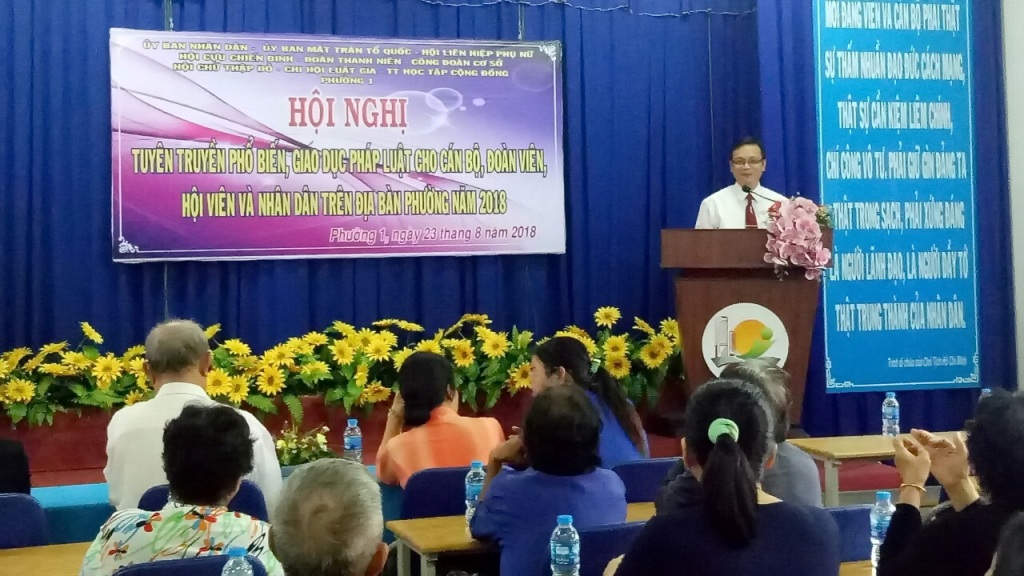 Uỷ ban nhân dân phối hợp với Uỷ ban MTTQ, Hội Liên hiệp phụ nữ, Hội Cựu chiến binh, Chi hội Luật gia, Hội Chữ thập đỏ, Đoàn thanh niên, Công đoàn cơ sở, Trung tâm Học tập cộng đồng Phường 1 tuyên truyền phổ biến, giáo dục Pháp luật cho cán bộ, Đoàn viên, hội viên và Nhân dân trên địa bàn phường.
