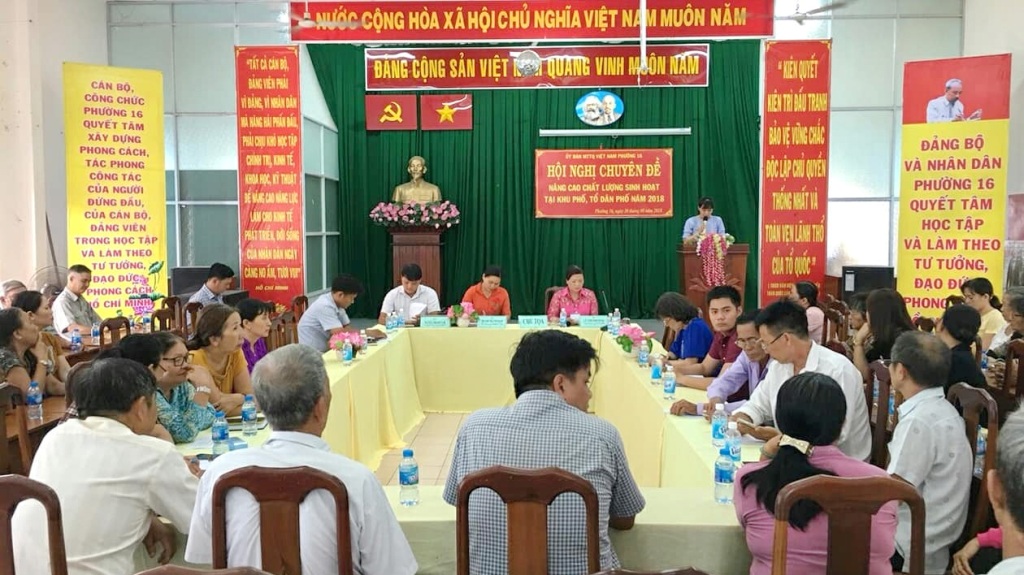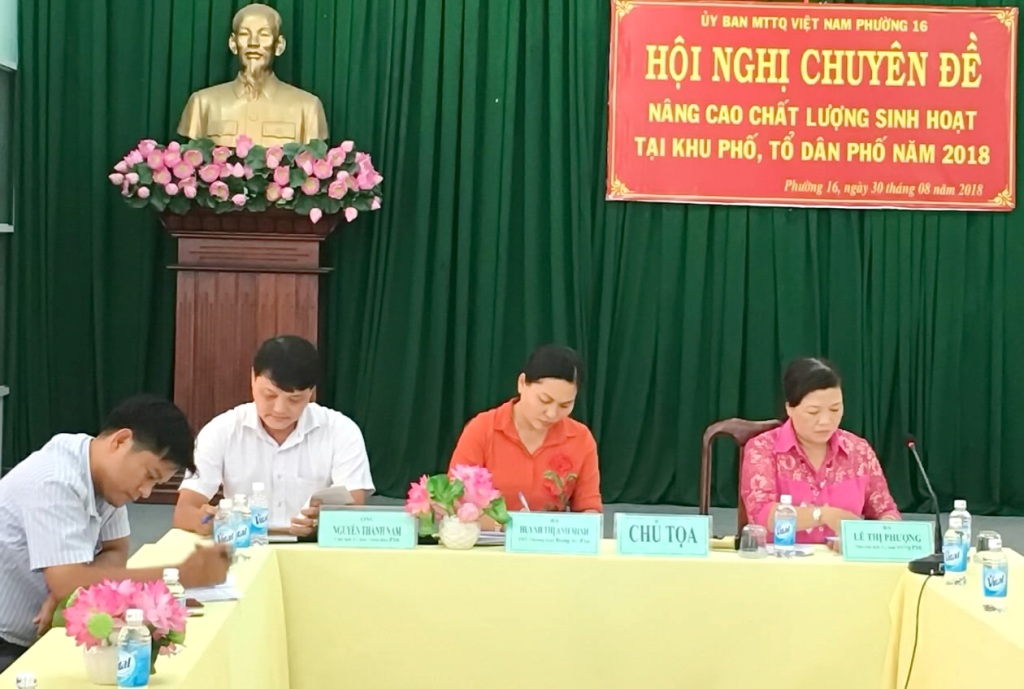 Nhằm đẩy mạnh phong trào Dân vận khéo chủ đề “Năm dân vận chính quyền”, nâng cao hiệu quả, chất lượng hoạt động của hệ thống chính trị, đặc biệt là nâng cao tỷ lệ dân dự họp tại khu phố, tổ dân phố, chiều 30/8, tại hội trường UBND, Ban Thường trực Ủy ban Mặt trận Tổ quốc Việt Nam Phường 16 tổ chức Hội nghị chuyên đề “Nâng cao chất lượng sinh hoạt tại khu phố, tổ dân phố” năm 2018. Đến dự hội nghị có ông Nguyễn Hoàng Anh, Phó Trưởng phòng Văn hóa - Thông tin Quận 8; bà Huỳnh Thị Anh Minh, Phó Bí thư Thường trực Đảng ủy, Chủ tịch Hội đồng nhân dân; ông Nguyễn Thành Nam, Phó Bí thư, Chủ tịch Ủy ban nhân dân; bà Lê Thị Phượng, Phó Chủ tịch Ủy ban Mặt trận Tổ quốc Việt Nam; Trưởng, phó các ngành, đoàn thể phường; Ban công tác Mặt trận, Trưởng, phó khu phố; tổ trưởng, tổ phó 68 tổ dân phố và đại diện một số hộ dân trên địa bàn phường.