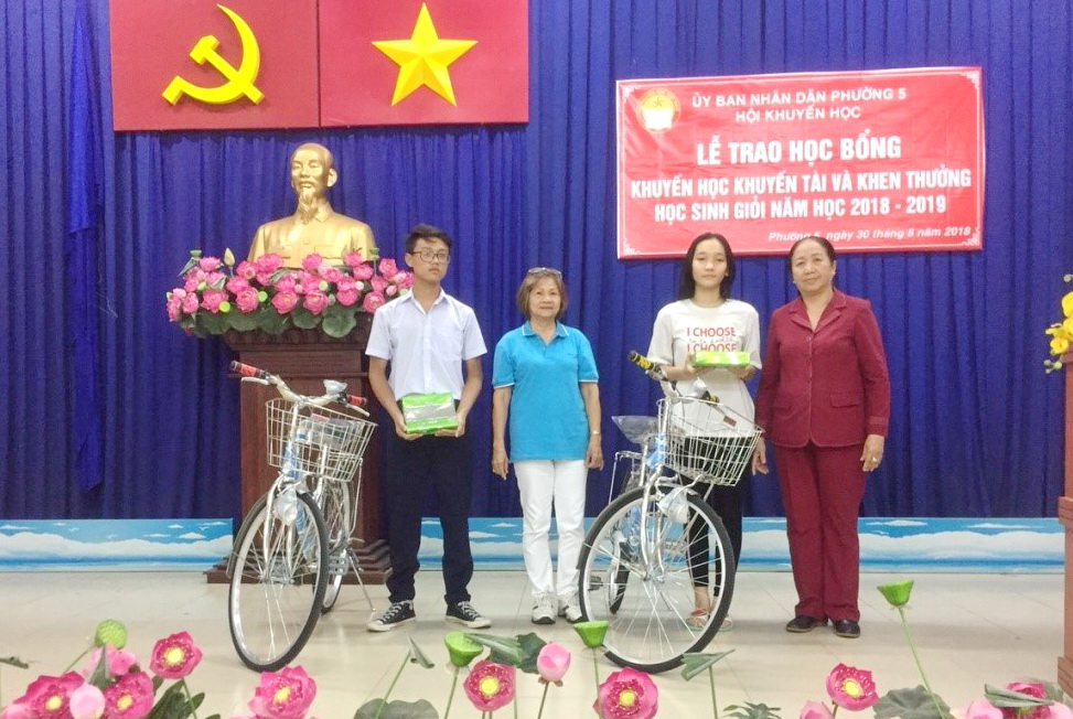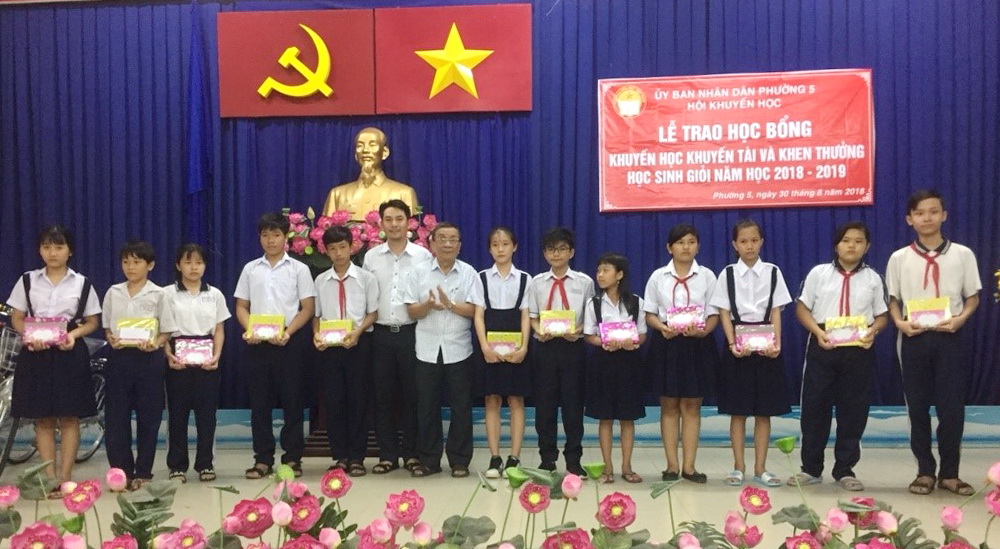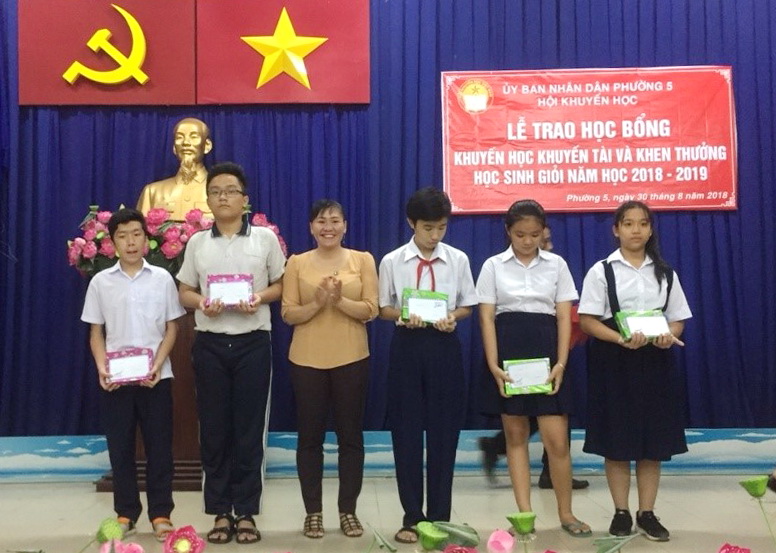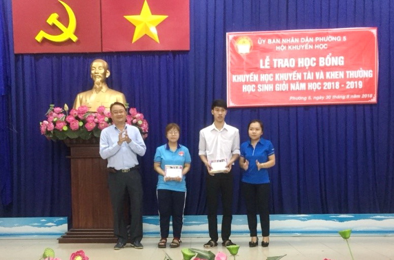 Tại buổi lễ, Hội khuyến học Phường 5 đã trao tặng 78 suất học bổng và dụng cụ học tập trị giá hơn 74 triệu đồng trong đó và 02 chiếc xe đạp cho các em học sinh có hoàn cảnh gia đình khó khăn trên địa bàn Phường.