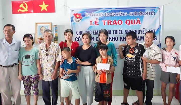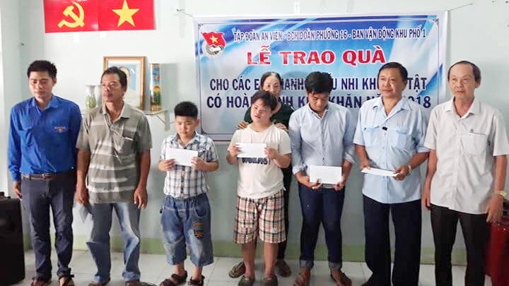 Sáng 8/9, tại trụ sở Khu phố 1, Ban Chấp hành Đoàn phường 16 phối hợp với Tập đoàn An Viên khu vực phía nam và Ban Vận động Khu phố 1 tổ chức trao quà cho các em khuyết tật có hoàn cảnh khó khăn trên địa bàn phường. Đến dự buổi lễ có bà Bùi Thị Bích Tuyền, Phó Chủ tịch Ủy ban nhân dân; ông Lê Văn Thành Trúc, Bí thư Đoàn phường; đại diện các ngành, đoàn thể phường; ông Danh Cư, Bí thư Chi bộ Khu phố 1; bà Huỳnh Thị Thu Dung, Trưởng đại diện phía nam Tập đoàn An Viên; đại diện gia đình và 20 em khuyết tật.