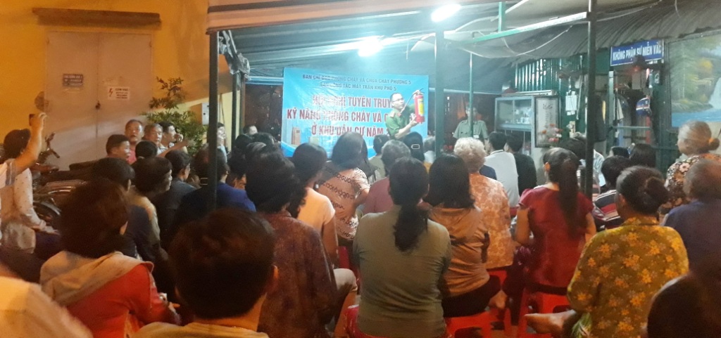 Thực hiện mô hình “Tổ dân phố Phòng cháy và chữa cháy” hưởng ứng Cuộc vận động “Toàn dân đoàn kết xây dựng nông thôn mới, đô thị văn minh”, tối ngày 16/9/2018 tại khu dân cư Khu phố 5, Ban Công tác Mặt trận Khu phố 5 Phường 5, Quận 8 tổ chức “Hội nghị tuyên truyền Kỹ năng Phòng cháy và chữa cháy ở khu dân cư năm 2018”, đồng thời vận động các hộ dân tự trang bị bình chữa cháy tại nhà theo mô hình “Tổ dân phố Phòng cháy và chữa cháy”.