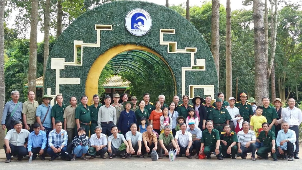 Các hội viên cựu chiến binh chụp hình lưu niệm tại Địa đạo Củ Chi