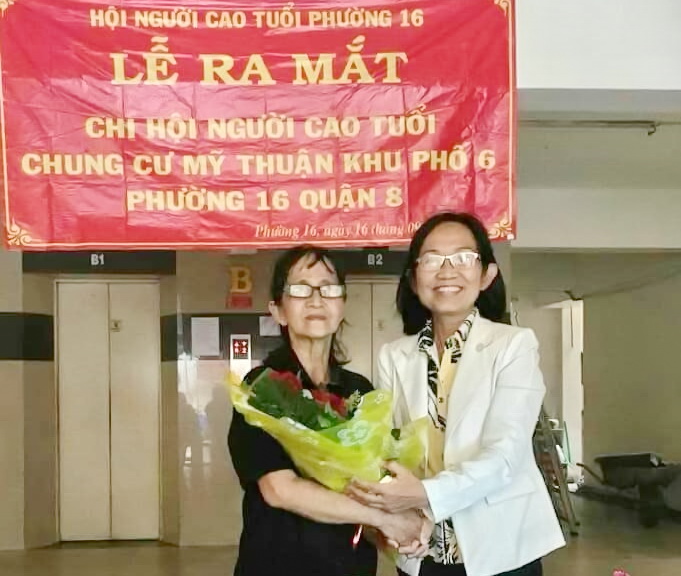 Chiều 16/9, tại Chung cư Mỹ Thuận, Chi hội Người cao tuổi Khu phố 6 tổ chức Lễ Kết nạp hội viên mới, đồng thời tại đây diễn ra Lễ Ra mắt Chi hội Người cao tuổi Chung cư Mỹ Thuận do Hội Người cao tuổi Phường 16 tổ chức. Đến dự buổi lễ có bà Lê Thị Thúy Hằng, Phó Trưởng Ban Đại diện Hội Người cao tuổi Quận 8; bà Phạm Thị Thử, Chủ tịch Hội Người cao tuổi Phường 16; đại diện Mặt trận và các đoàn thể phường; Khu phố trưởng, Trưởng Ban công tác Mặt trận, cán bộ, hội viên Chi hội Người cao tuổi Khu phố 6. Phát biểu tại buổi lễ, bà Lê Thị Thúy Hằng chúc mừng các hội viên mới, chúc mừng Chi hội Chung cư Mỹ Thuận. Đồng thời, bà đề nghị Chi hội tập trung công tác phát triển hội viên; thực tốt phong trào “Tuổi cao - Gương sáng”; tích cực tham gia các phong trào do địa phương và các cấp hội phát động; đẩy mạnh công tác tuyên truyền, vận động cán bộ, hội viên và nhân dân thực hiện tốt các chủ trương, chính sách của Đảng, Nhà nước,…