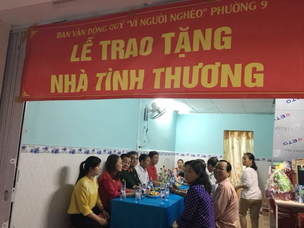 Chiều ngày 20 tháng 9 năm 2018, Ban vận động Vì người nghèo Phường 9 Quận 8 tổ chức lễ trao nhà tình thương cho hộ gia đình bà Trần Thị Nữ với tổng kinh phí là 44.000.000 đồng (Bốn mươi bốn triệu đồng). Qua đó đã giúp cho 10 thành viên trong gia đình có chỗ ở ổn định, không còn cảnh mưa dột, nước ngập, an tâm làm kinh tế có thu nhập ổn định từng bước thoát nghèo.