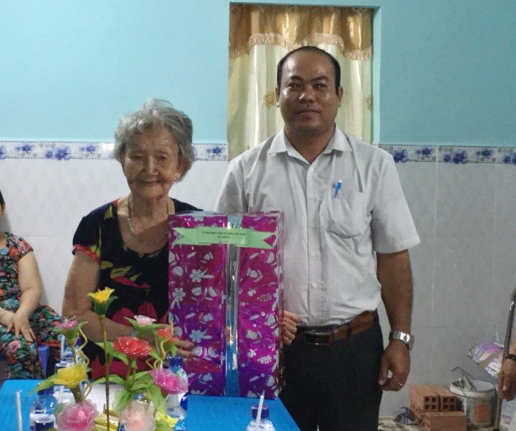 Ông Lê Phan Anh – Chủ tịch UB.MTTQ Phường 9 tặng quà cho bà Trần Thị Nữ