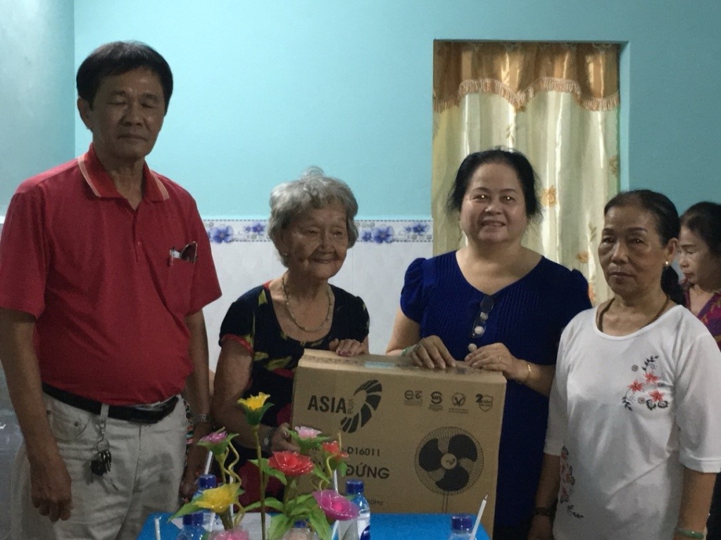 Đại diện cấp ủy-BĐH-Ban CTMT khu phố 4 trao tặng quà cho bà Trần Thị Nữ.
