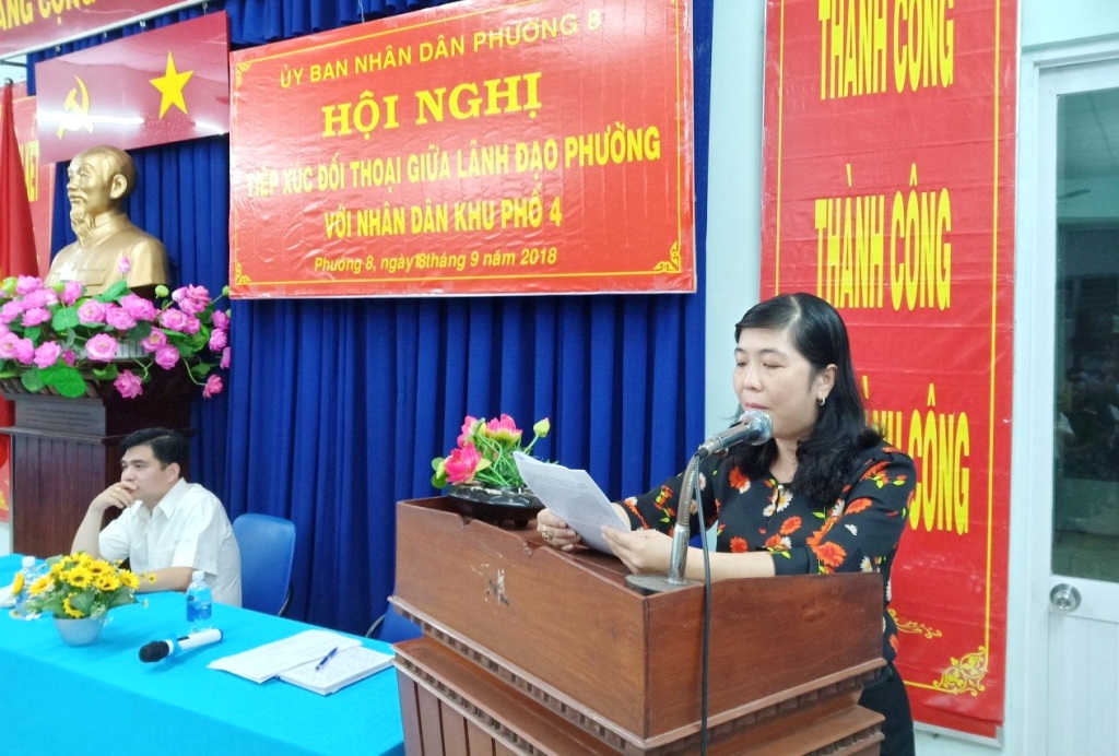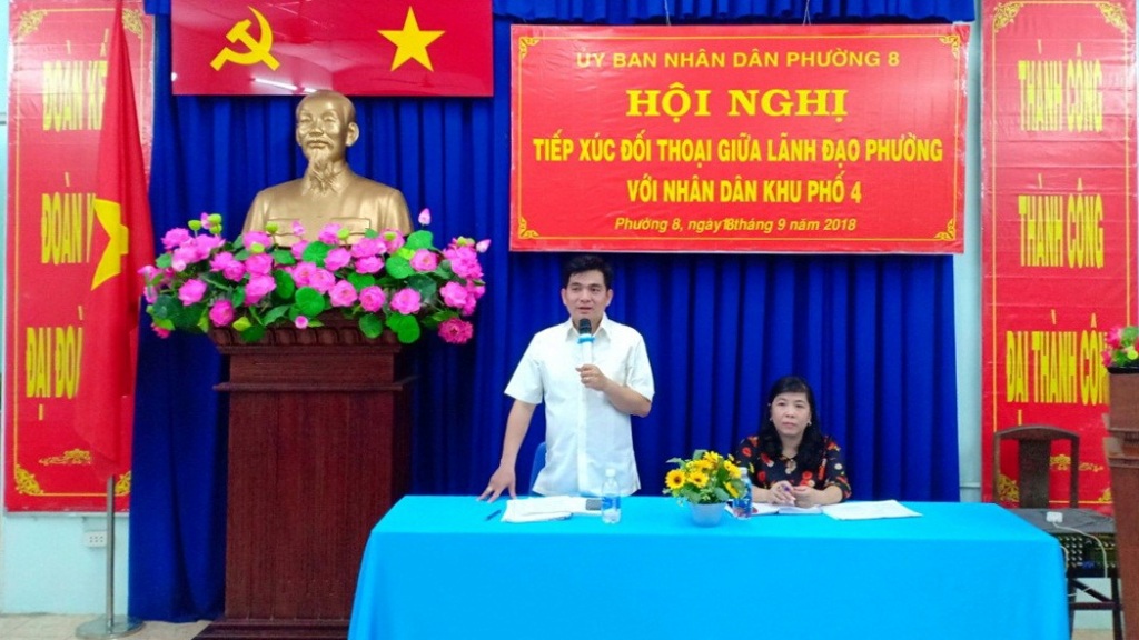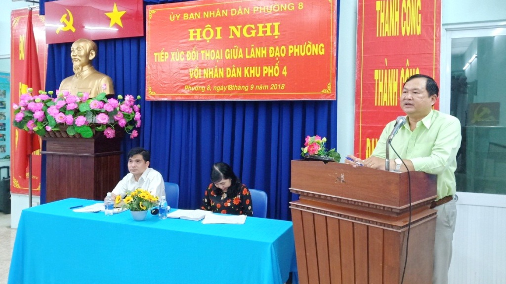 Trong 4 ngày 18, 19, 20 và 22/9/2018, Ủy ban nhân dân Phường 8 tổ chức tiếp xúc đối thoại trực tiếp giữa lãnh đạo phường và nhân dân tại 4 khu phố.