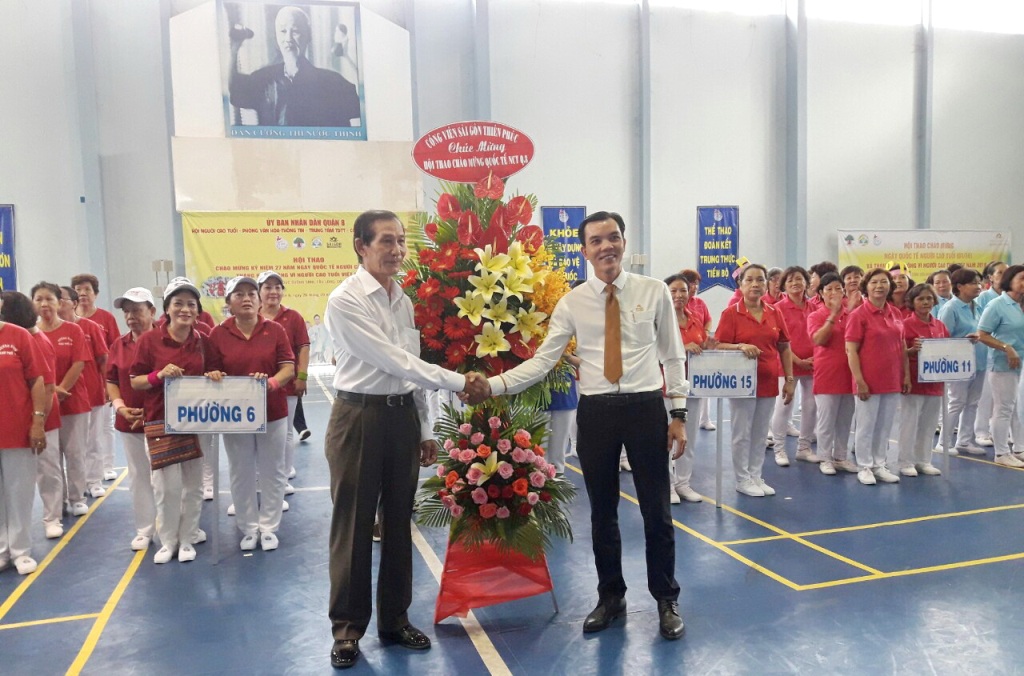 Trong phần phát biểu khai mạc hội thao, ông Lê Kiến Hiệp - Trưởng ban Đại diện Hội Người cao tuổi Quận 8 nêu mục đích, ý nghĩa của đợt hội thao và chào mừng 189 vận động viên thi môn thể dục dưỡng sinh, 56 vận động viên thi môn cầu lông, 48 kỳ thủ thi môn cờ tướng và 305 cổ động viên người cao tuổi tham gia cổ động.