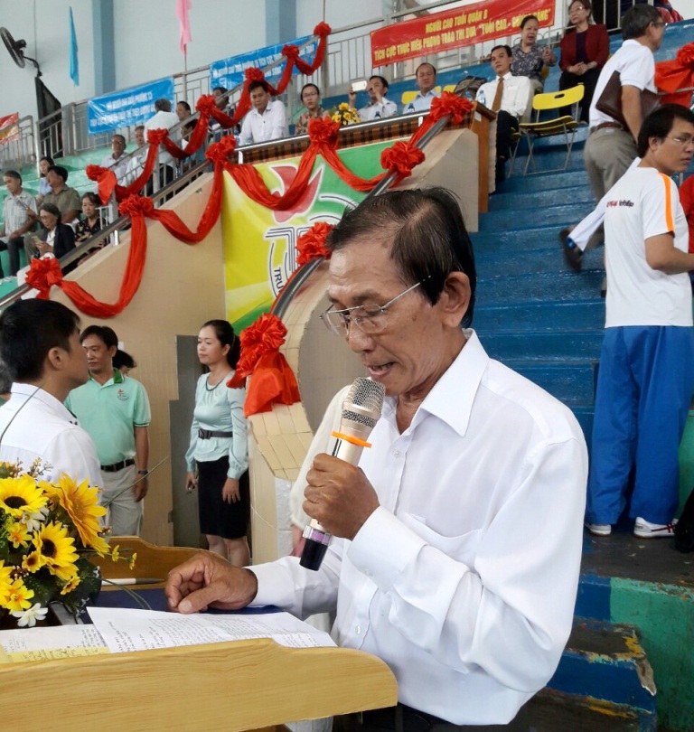 Ông Lê Kiến Hiệp - Trưởng ban Đại diện Hội Người cao tuổi Quận 8 phát biểu khai mạc hội thao