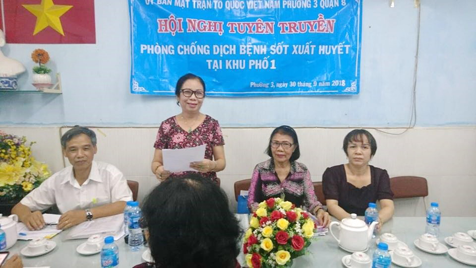 Tối ngày 17 tháng 10 năm 2018 tại Trụ sở Ban điều hành Khu phố 1 (90/11D Âu Dương Lân P3 Q8). Mặt Trận Tổ Quốc Việt Nam Phường 3 tổ chức tuyên truyền phòng chống bệnh sốt xuất huyết Tại Khu phố 1 năm 2018.