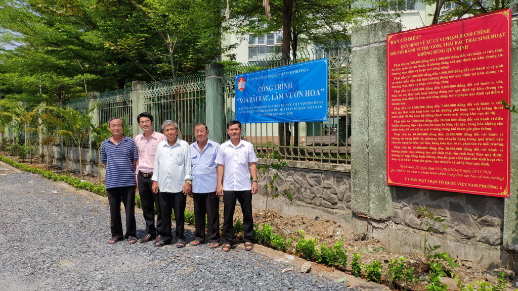 Ngày 23/10, Mặt trận Tổ quốc Phường 6 và Ban Công tác Mặt trận – Ban Điều hành khu phố 6 cùng Hội đồng mục vụ Giáo xứ Bình An, Bình Thái và nhân dân khu phố 6 thực hiện công trình “Xóa bãi rác, làm vườn hoa” tại hẻm 2273 Phạm Thế Hiển.