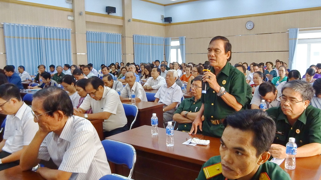 Cử tri phát biểu ý kiến trong hội nghị.