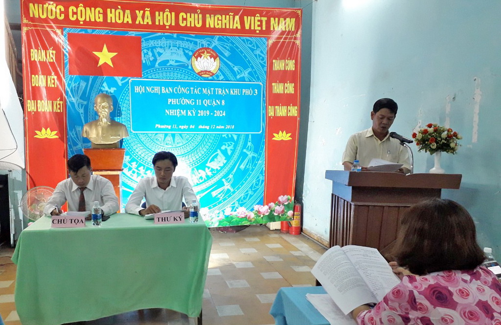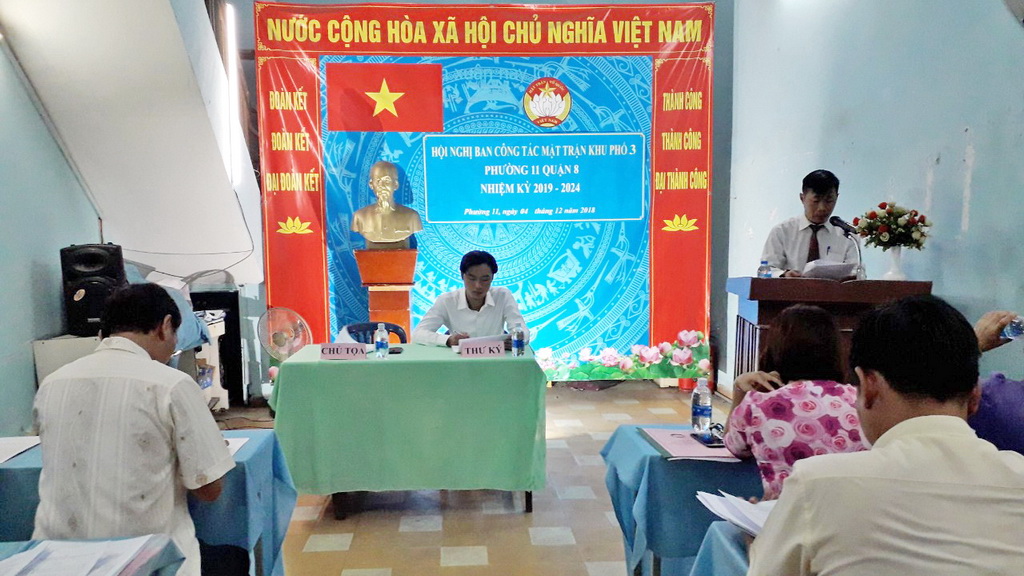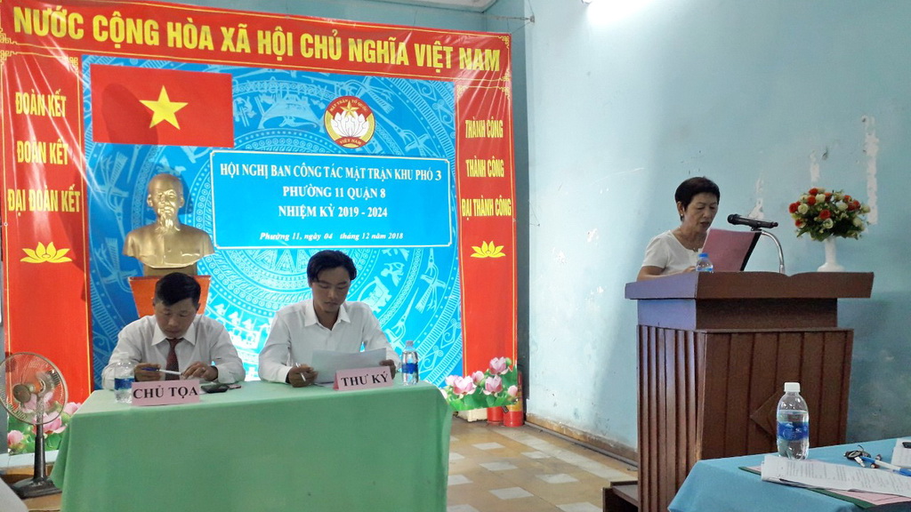 Tối ngày 04 tháng 12 năm 2018, tại trụ sở khu phố 3 đã diễn ra hội nghị Ban công tác Mặt trận khu phố 3 Phường 11 Quận 8 (nhiệm kỳ 2019 – 2024).