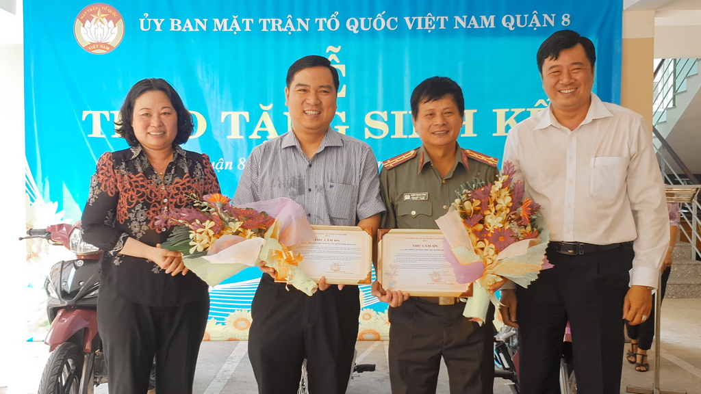 Dự lễ trao tặng phương tiện sinh kế, có sự tham dự của Đại tá Trần Trọng Dũng - Tổng Biên tập Báo Công an Thành phố Hồ Chí Minh; Ông Phạm Ngọc Muôn - Ủy viên Ban Thường vụ Quận ủy, Trưởng Ban Dân vận Quận ủy Quận 8; Bà Trần Thị Thu Thủy, Phó Chủ tịch Ủy ban Mặt trận Tổ quốc Việt Nam Quận 8 cùng sự tham dự của đại diện lãnh đạo Phòng lao động Thương binh và xã hội Quận 8, Thường trực Ủy ban Mặt trận Tổ quốc Việt Nam Phường 2, 9, 10 và các cá nhân nhận phương tiện sinh kế.