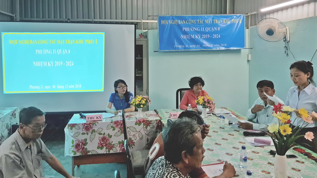 Tối ngày 06 tháng 12 năm 2018, tại điểm sinh hoạt khu phố 1 đã diễn ra hội nghị Ban công tác Mặt trận khu phố 1 Phường 11 Quận 8 (nhiệm kỳ 2019 – 2024).
