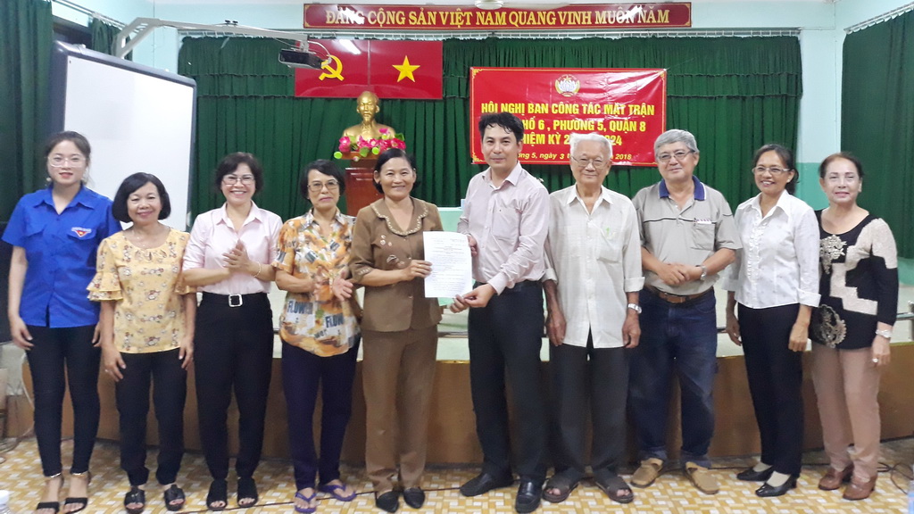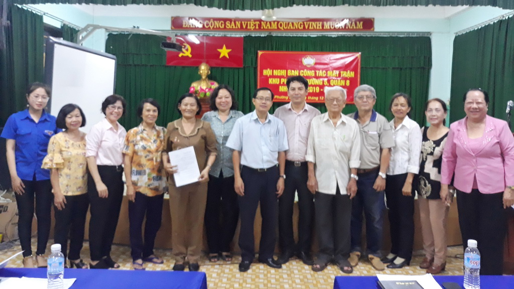 Công bố Quyết định thành lập Ban Công tác Mặt trận nhiệm kỳ 2019 – 2024 và chụp hình lưu niệm cùng lãnh đạo cấp Quận và Phường.