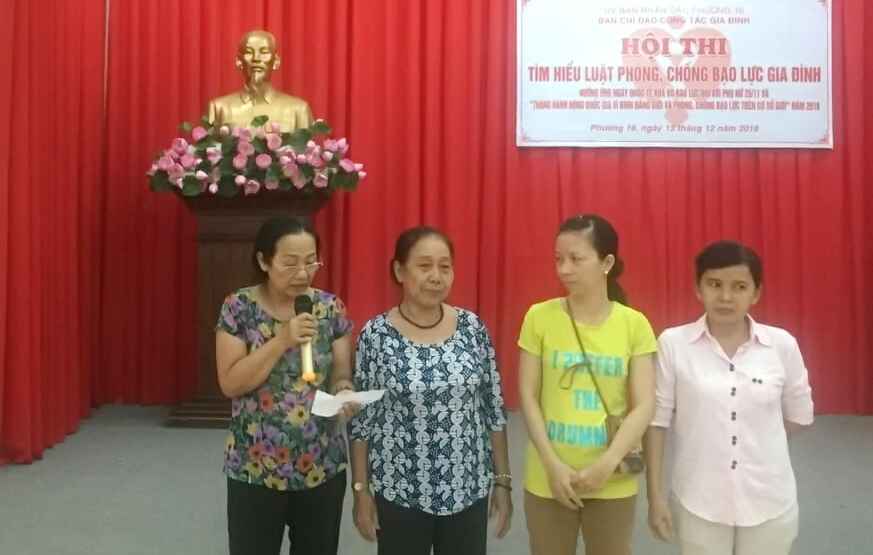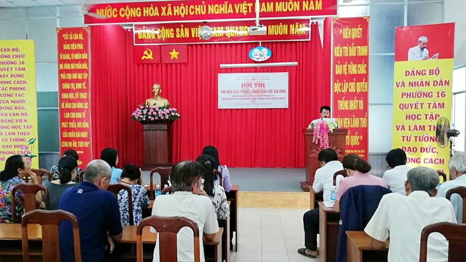 Hưởng ứng Ngày quốc tế xóa bỏ bạo lực đối với phụ nữ (25/11) và “Tháng hành động vì bình đẳng giới và phòng, chống bạo lực trên cơ sở giới”, chiều 13/12, tại hội trường, Ủy ban nhân dân Phường 16 tổ chức Hội thi “Tìm hiểu Luật Phòng, chống bạo lực gia đình”. Nội dung thi tập trung tìm hiểu các quy định về: các hành vi được coi là hành vi bạo lực gia đình; các cơ sở có thể trợ giúp nạn nhân bạo lực gia đình; nghĩa vụ của người có hành vi bạo lực gia đình; các hành vi bạo lực gia đình bị nghiêm cấm; các biện pháp ngăn chặn, bảo vệ nạn nhân bạo lực gia đình; các hình thức xử lý người có hành vi vi phạm pháp luật về phòng, chống bạo lực gia đình; các biện pháp giáo dục người vi phạm...Hội thi là một kênh tuyên truyền các quy định của pháp luật về phòng, chống bạo lực gia đình cho cán bộ, công chức, đoàn viên, hội viên và nhân dân trên địa bàn phường, đặc biệt là phụ nữ, góp phần hạn chế thấp nhất tình trạng bạo lực và xây dựng gia đình hạnh phúc, bình đẳng, xây dựng gia đình văn hóa, khu phố văn hóa; nâng cao hơn nữa nhận thức, vai trò trách nhiệm của các ban, ngành, hội đoàn thể trong công tác phòng, chống bạo lực gia đình.