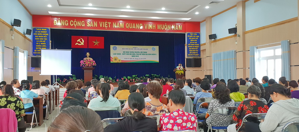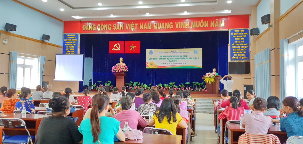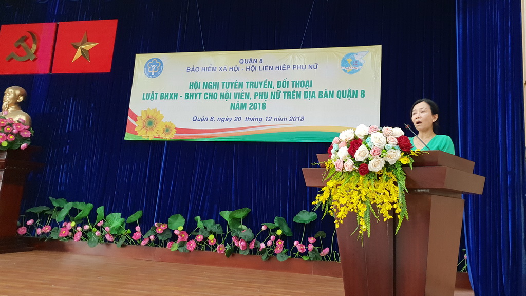 Sáng ngày 20/12/2018, Hội LHPN phối hợp Bảo hiểm xã hội Quận 8 tổ chức Hội nghị tuyên truyền, đối thoại về Luật BHXH - BHYT cho đối tượng là cán bộ, hội viên, phụ nữ Quận 8.