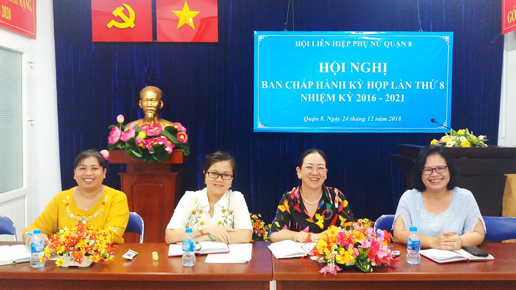 Căn cứ Hướng dẫn của Liên đoàn lao động Quận 8 về việc tổ chức Hội nghị cán bộ công chức, Hội nghij người lao động năm 2019. Chiều ngày 21/12/2018, cơ quan Hội LHPN Quận 8 tổ chức Hội nghị cán bộ công chức năm 2019 để kiểm điểm việc thực hiện Nghị quyết Hội nghị cán bộ công chức năm 2018, thông qua phương hướng nhiệm vụ và phát động phong trào thi đua năm 2019.