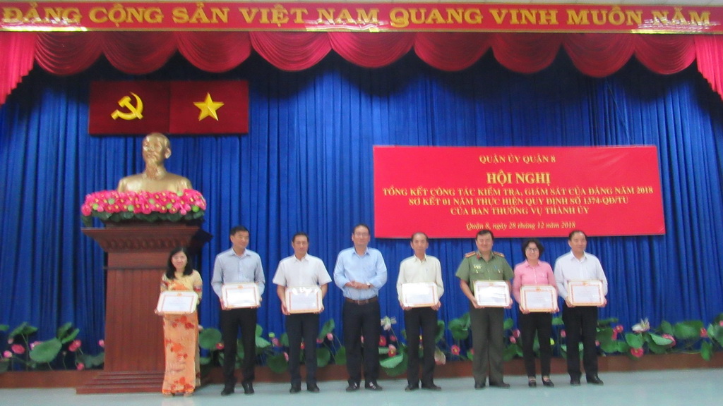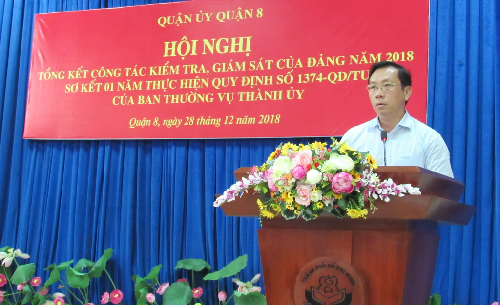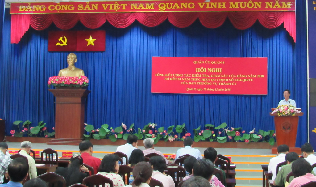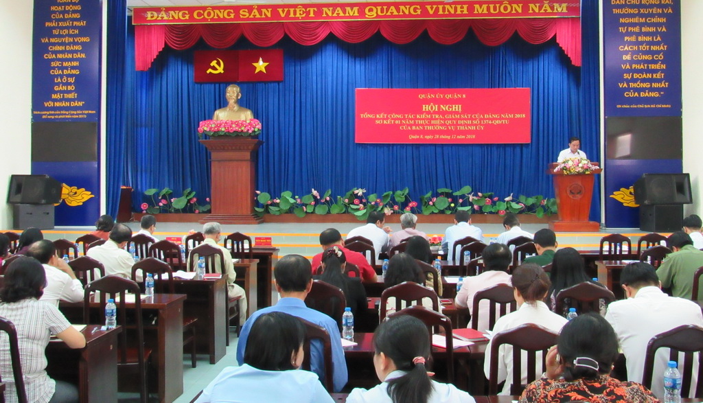 Sáng ngày 28/12, Quận ủy Quận 8 tổ chức hội nghị tổng kết công tác kiểm tra, giám sát của Đảng năm 2018; sơ kết 01 năm thực hiện Quy định số 1374-QĐ/TU của Ban Thường vụ Thành ủy và triển khai nhiệm vụ trọng tâm năm 2019.