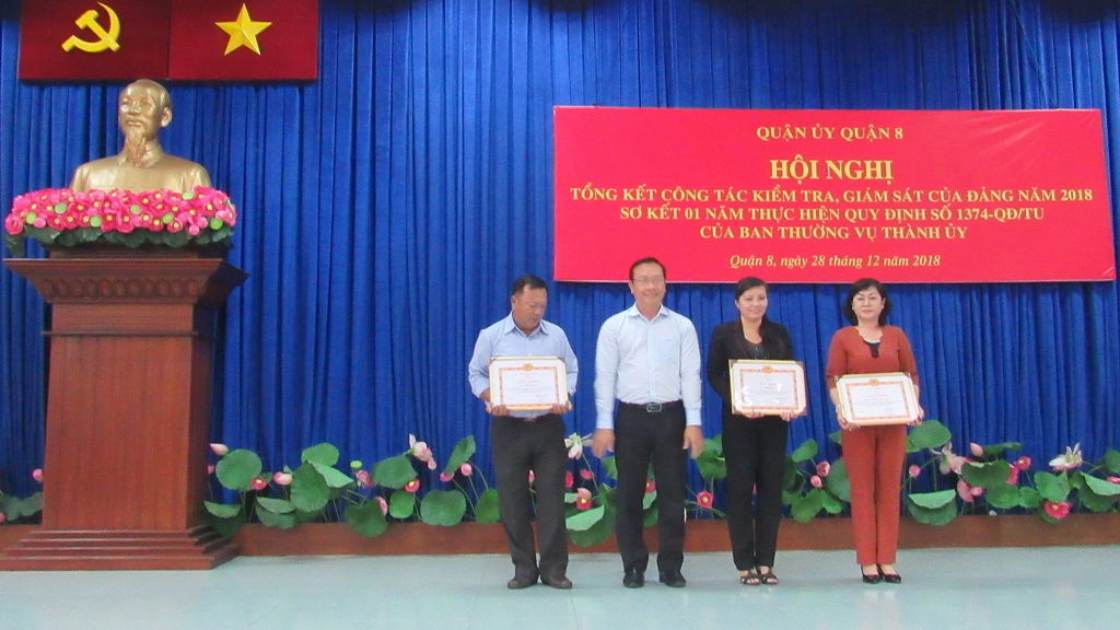 Nhân dịp này, Quận ủy đã khen thưởng 10 tập thể có thành tích xuất sắc tiêu biểu trong công tác kiểm tra, giám sát và thực hiện Quy định số 1374-QĐ/TU của Thành ủy, Quy định số 1896-QĐ/QU của Quận ủy.
