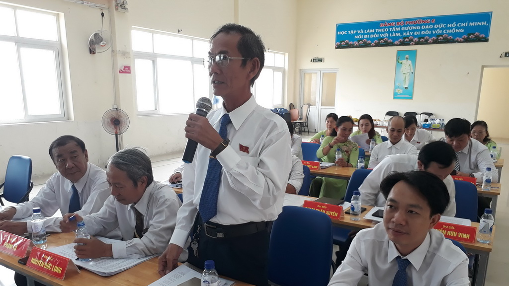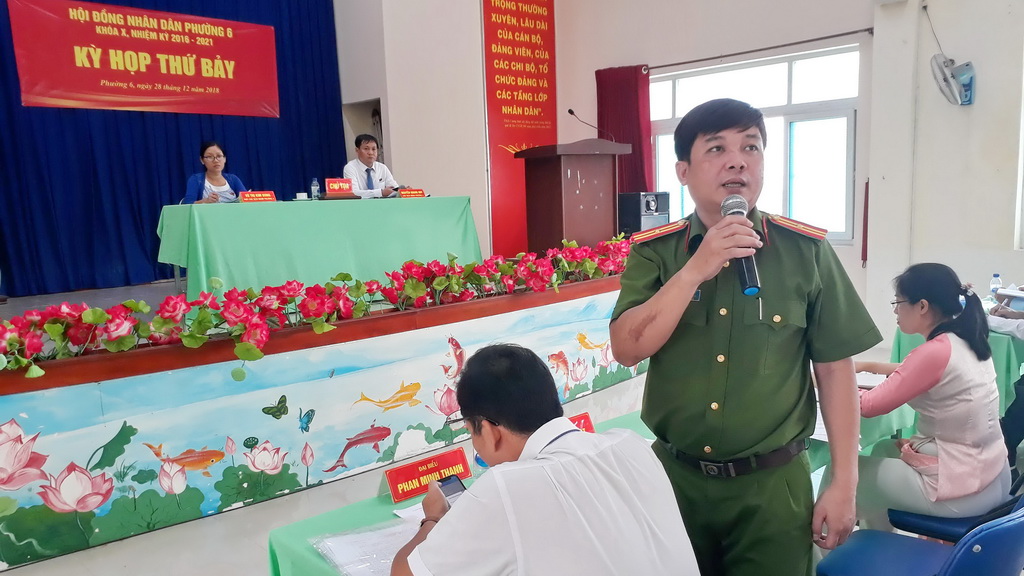 Sáng 28/12, Hội đồng nhân dân Phường 6 tổ chức kỳ họp thứ bảy, kỳ họp thường lệ của Hội đồng nhân dân Phường 6 khóa X nhiệm kỳ 2016 – 2021. Đến tham dự kỳ họp có ông Phạm Minh Tâm – Phó Trưởng Ban Pháp chế HĐND quận.