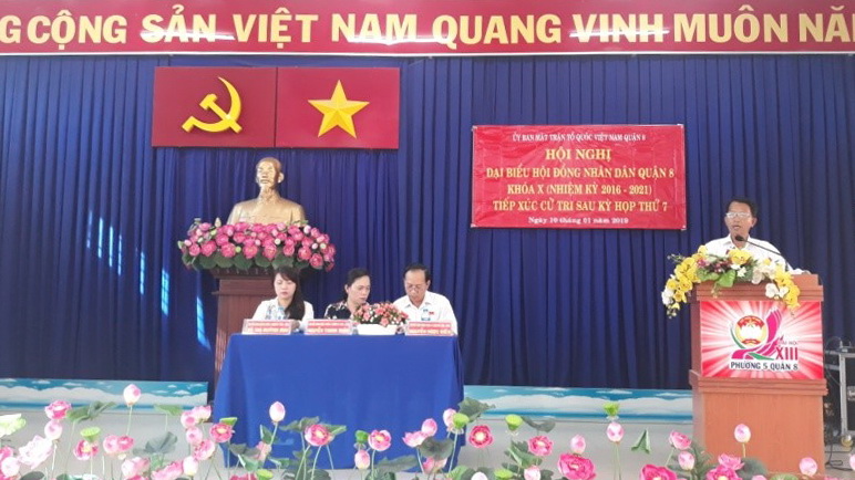Ngày 10 tháng 01 năm 2019, tại Ủy ban nhân dân Phường 5 diễn ra Hội nghị tiếp xúc giữa cử tri Phường 5 với Tổ Đại biểu Hội đồng nhân dân Quận 8 khóa X, nhiệm kỳ 2016 - 2021 sau kỳ họp lần thứ bảy.