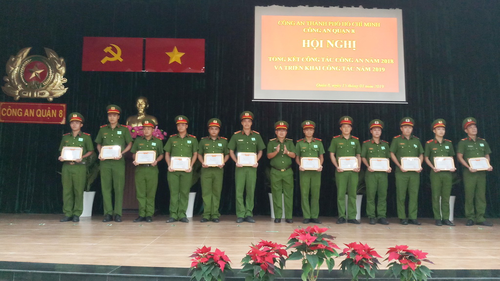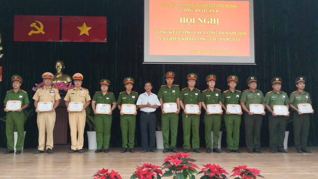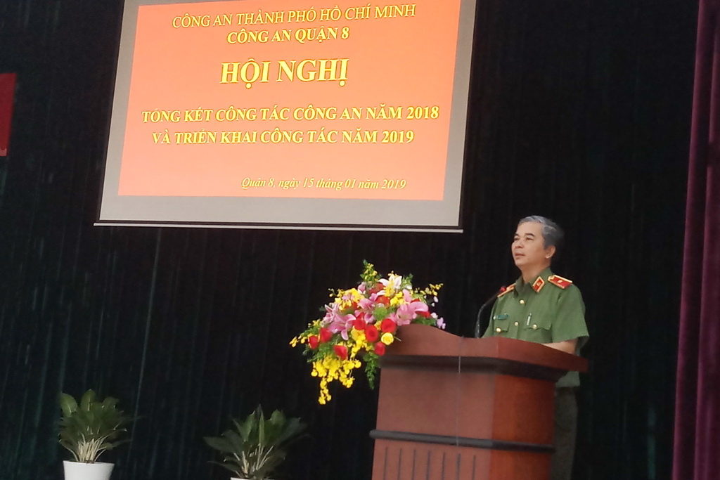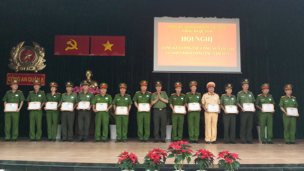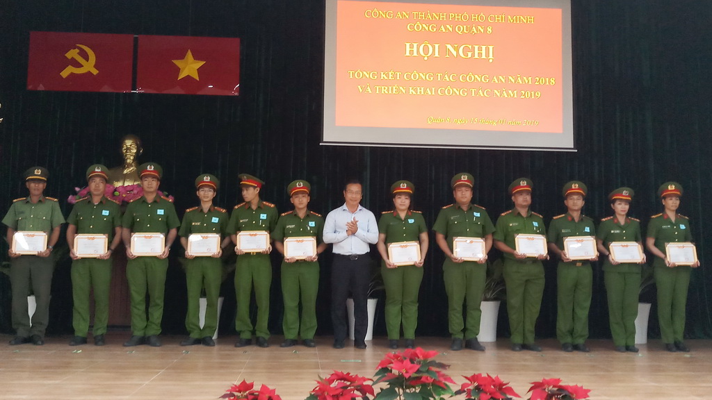 Sáng 15/01, Công an Quận 8 đã tổ chức hội nghị tổng kết công tác năm 2018 và triển khai công tác năm 2019; đến dự và chỉ đạo hội nghị có đồng chí Thiếu tướng Ngô Minh Châu, Phó Bí thư Đảng ủy, Phó Giám đốc Công an TPHCM; Bí thư Quận ủy, Chủ tịch Hội đồng nhân dân Quận 8 Ngô Thành Tuấn; Phó Bí thư Quận ủy, Chủ tịch Ủy ban nhân dân Quận 8 Trần Quang Thảo. Đại tá Lê Văn Bích, Trưởng Công an Quận 8 chủ trì hội nghị.