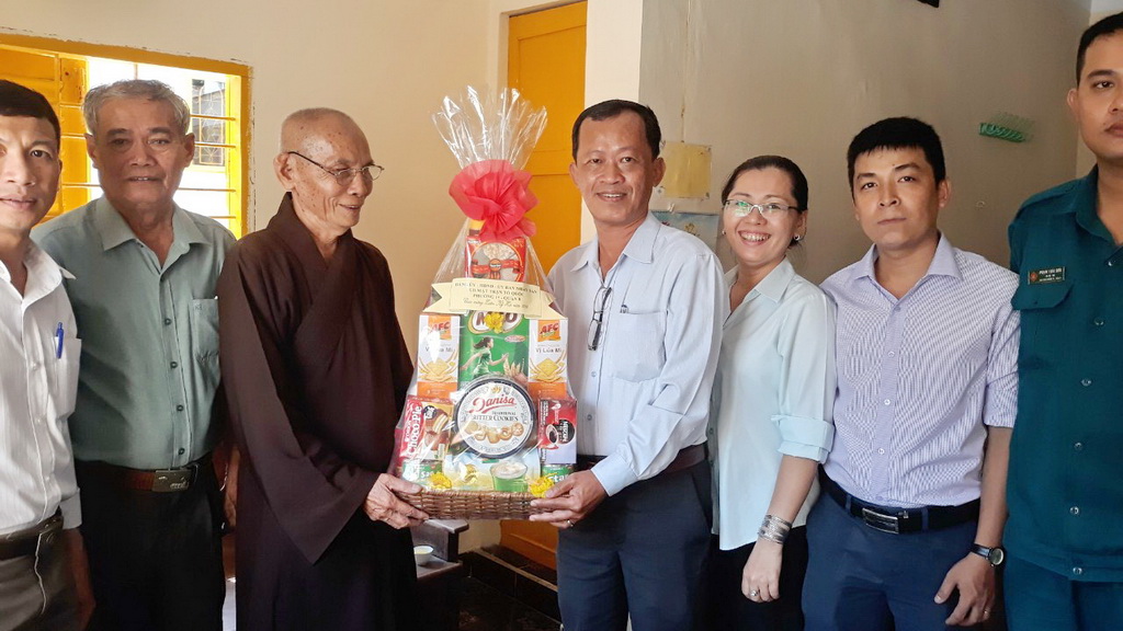 Ông Huỳnh Kim Châu – Phó Bí thư Thường trực Đảng ủy Phường 15 thăm, tặng quà và chúc mừng Hòa thượng Thích Tắc Liên nhân dịp Tết Nguyên đán Kỷ Hợi năm 2019