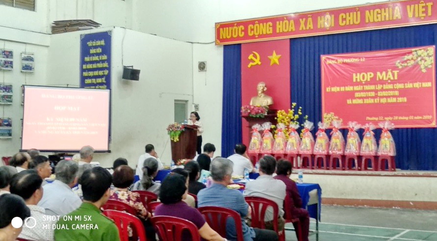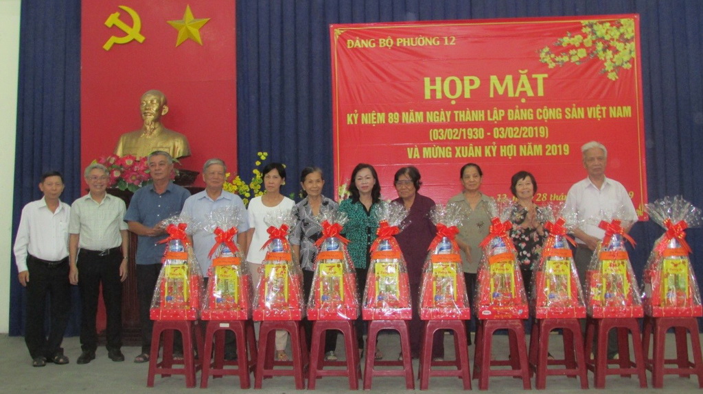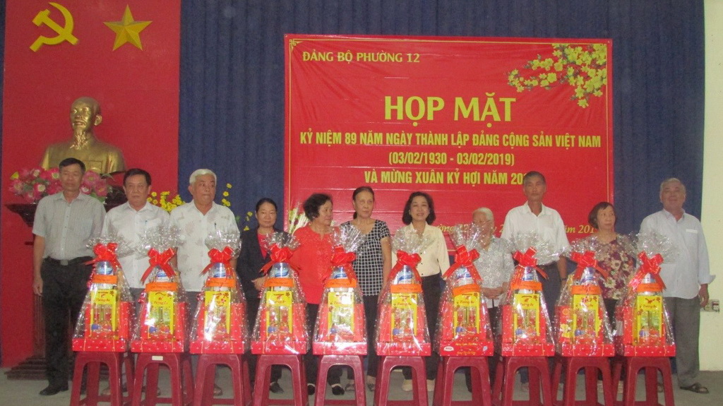 Sáng ngày 28/01/2019, Đảng Bộ Phường 12 tổ chức họp mặt kỷ niệm 89 năm ngày thành lập Đảng Cộng sản Việt Nam (03/02/1930 - 03/02/2019) và mừng Xuân Kỷ Hợi năm 2019. Tham dự có Đ/c Trần Thị Xuân Hồng – Ủy viên Ủy ban Kiểm tra Quận ủy; đ/c Nguyễn Thị Kim Yến - Bí thư Đảng ủy- Chủ tịch HĐND phường; BCH đảng bộ, ban ngành đoàn thể và đảng viên cao tuổi đảng.