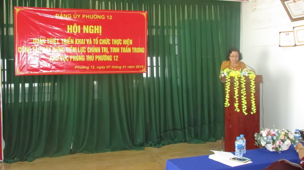Chiều ngày 31/01/2019, Đảng ủy Phường 12 tổ chức họp mặt lực lượng chính trị nòng cốt. Trong năm 2018, lực lượng chính trị nòng cốt đã tích cực tham gia và vận động nhân dân thực hiện chủ trương, đường lối của Đảng, chính sách, pháp luật của Nhà nước và các phong trào do địa phương phát động cuộc vận động “Toàn dân đoàn kết xây dựng nông thôn mới, đô thị văn minh”; toàn dân bảo vệ an ninh Tổ quốc. Chủ động nắm bắt tâm tư nguyện vọng của quần chúng nhân dân, nhất là đối với sự kiện quan trọng của đất nước như hội nghị APEC, các chuyến thăm của lãnh đạo Đảng, Nhà nước tới các nước bạn, thông qua luật an ninh mạng,....