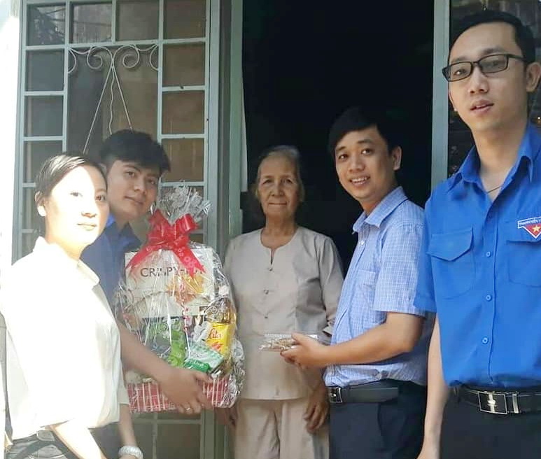 Đoàn Thanh niên phường phối hợp với Đoàn Thanh niên Trường THPT Chuyên năng khiếu TDTT Nguyễn Thị Định trao quà tết cho hộ dân khó khăn