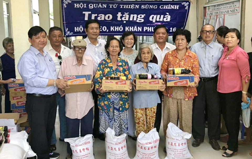 Mặt trận và các đoàn thể phường phối hợp với Hội quán từ thiện Sùng Chính trao quà tết cho các hộ dân nghèo, khó khăn