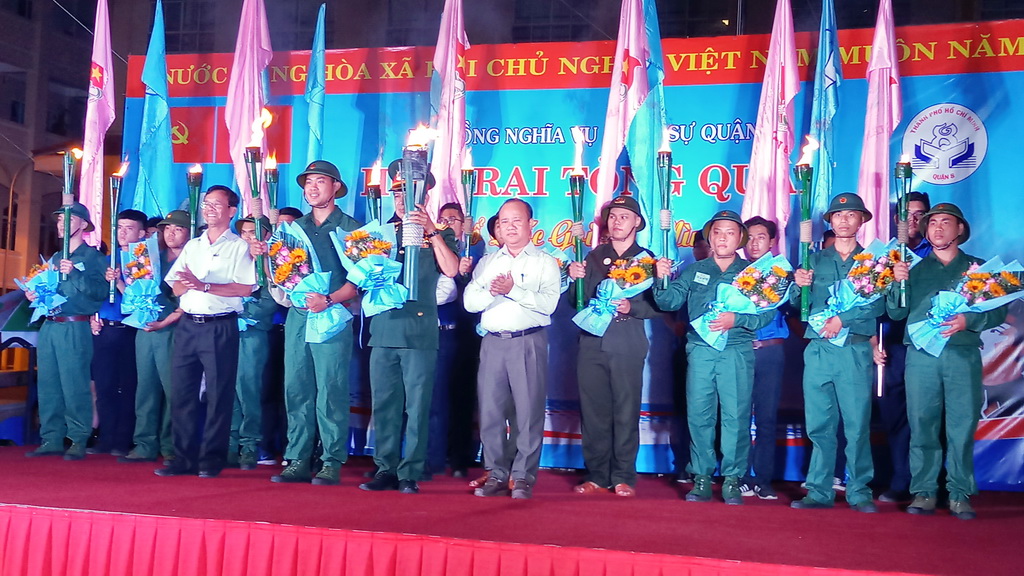Đây là ngày hội lớn của toàn dân nói chung, của tuổi trẻ Quận 8 nói riêng, Phó Bí thư Quận ủy, Chủ tịch Ủy ban nhân dân, Chủ tịch Hội đồng Nghĩa vụ Quân sự Quận 8 Trần Quang Thảo đã gửi lời chào nồng nhiệt nhất đến các vị đại biểu, gia đình thân nhân, bạn bè và các thanh niên có mặt để sẵn sàng lên đường thực hiện nhiệm vụ bảo vệ Tổ quốc. Trong 218 thanh niên lên đường hôm nay có 08 đồng chí là đảng viên Đảng Cộng sản Việt Nam, còn lại là đối tượng đảng và đoàn viên ưu tú, được giao cho 06 đơn vị nhận quân gồm: Bộ Tư lệnh Vùng 3 Cảnh sát Biển, Trung đoàn 4/Sư đoàn 5, Tiểu đoàn cảnh vệ 180/Bộ tham mưu Quân khu 7, Trung đoàn gia Định, Bộ đội Biên phòng Thành phố và thực hiện nghĩa vụ tham gia Công an nhân dân. Các tân binh đều có tư tưởng hoài bão, xác định rõ trách nhiệm của mình, hăng hái lên đường làm nhiệm vụ; sẵn sàng nhận và hoàn thành tốt nhiệm vụ của mình trong Quân đội, góp phần xây dựng Quân đội nhân dân Việt Nam cách mạng, chính quy, tinh nhuệ và từng bước hiện đại, để bảo vệ vững chắc Tổ quốc Việt Nam XHCN, độc lập, dân chủ và giàu mạnh.
