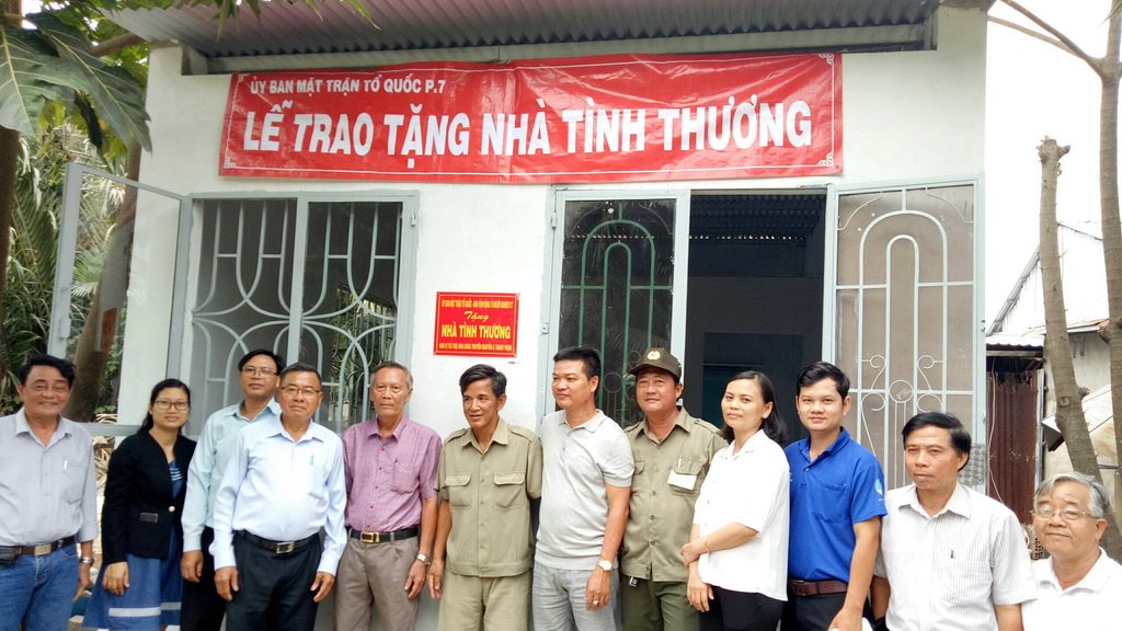 Nhằm xây dựng công trình chào mừng Đại hội Mặt trận Tổ quốc Phường 7 nhiệm kỳ 2019-2024 và chào mừng Đại hội Mặt trận Tổ quốc các cấp nhiệm kỳ 2019-2024 và kịp thời chăm lo cho các hộ nghèo trên địa bàn phường trong năm 2019, ngày 22 tháng 02 năm 2019 Ủy ban Mặt trận Tổ quốc – Ban vận động Vì người nghèo phường 7 tổ chức lễ bàn giao nhà tình thương cho hộ gia đình Ông Nguyễn Trường Cữu địa chỉ 141 đường Rạch Cùng Phường 7 Quận 8.